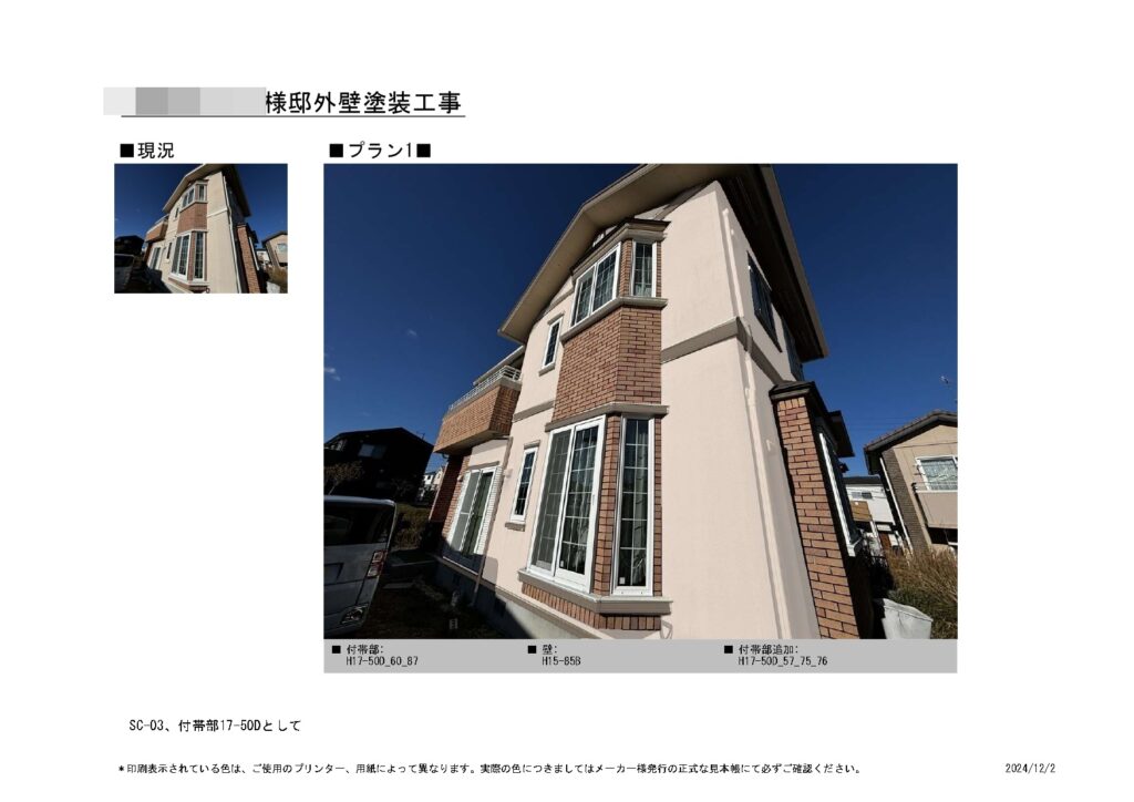カラーシミュレーションは4パターンご提案させて頂きました。