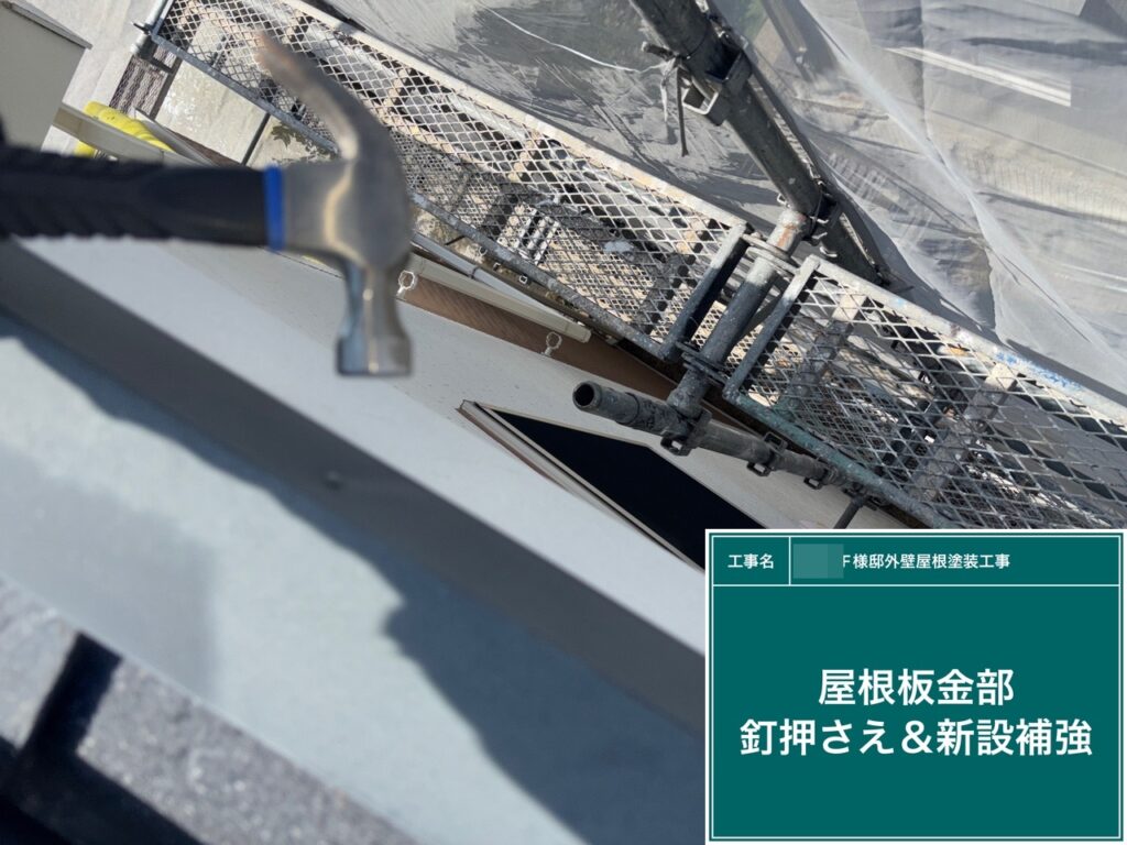 屋根鈑金部の素地調整を行います。