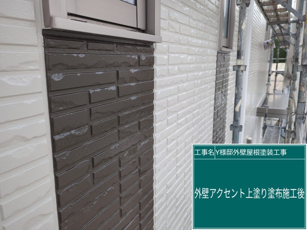 お客様のご要望として、次回の塗装までに長く綺麗さを保ちたいということでしたので、外壁は、弊社一押し塗料の高耐久性と美観性の優れた無機エクスカリバーでご提案させて頂きました。こちらの塗料は公表されている無機含有率の高さで、高耐久性は勿論の事、美観性も維持してくれる塗料となります。また美観性を底上げしてくれる仕上げ材として、弊社の取り扱っているクリスタルシーズンという光触媒コーティングのご提案もさせて頂きました。こちらは塗料仕上げ剤として最後の工程に外壁や付帯部、などお家全体に吹付けるコーティング材となります。
