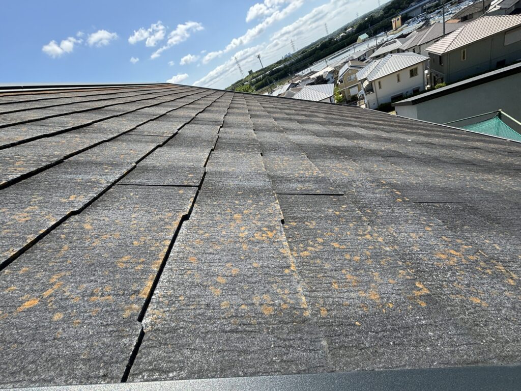 屋根は薄型スレート瓦で、紫外線劣化が目立ちました。