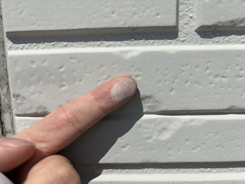 チョーキング現象が起きています。防水性が劣化しているサインです。