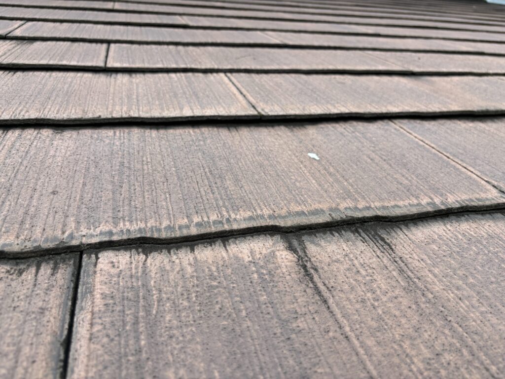 表層塗膜は劣化しています。反りかえりやクラックが起こる前に塗装しましょう(冬場、基材自体に水分を含み凍結するとヒビ割れが起きます)。縁切り作業(タスペーサー設置)し、3回塗り致します。