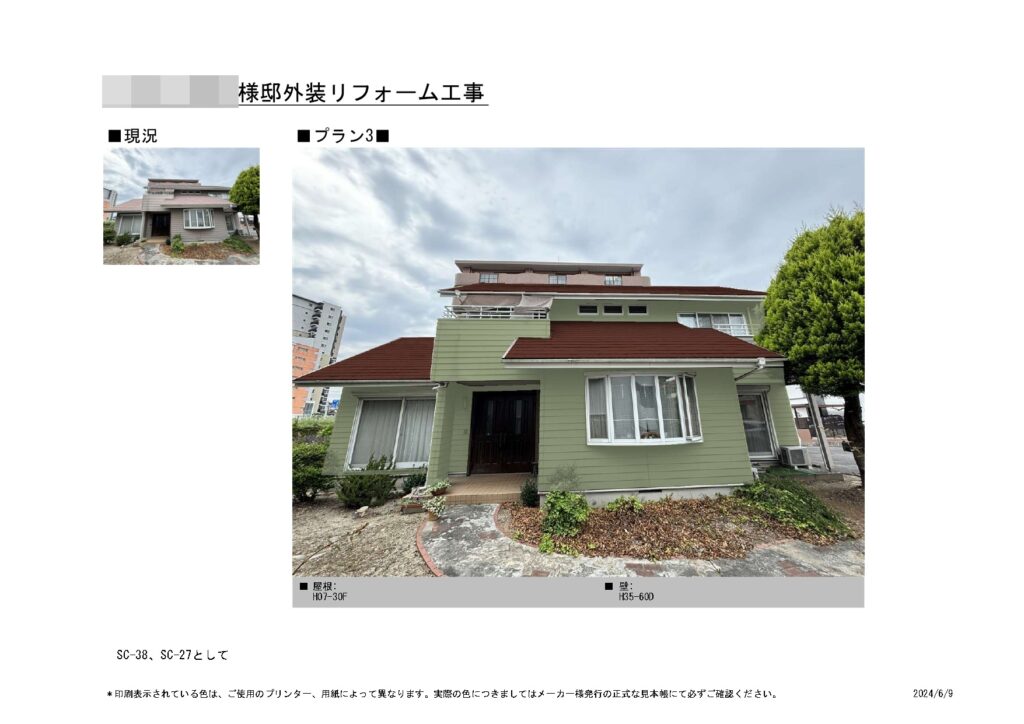 カラーシミュレーションは4パターン作成させていただきました。」