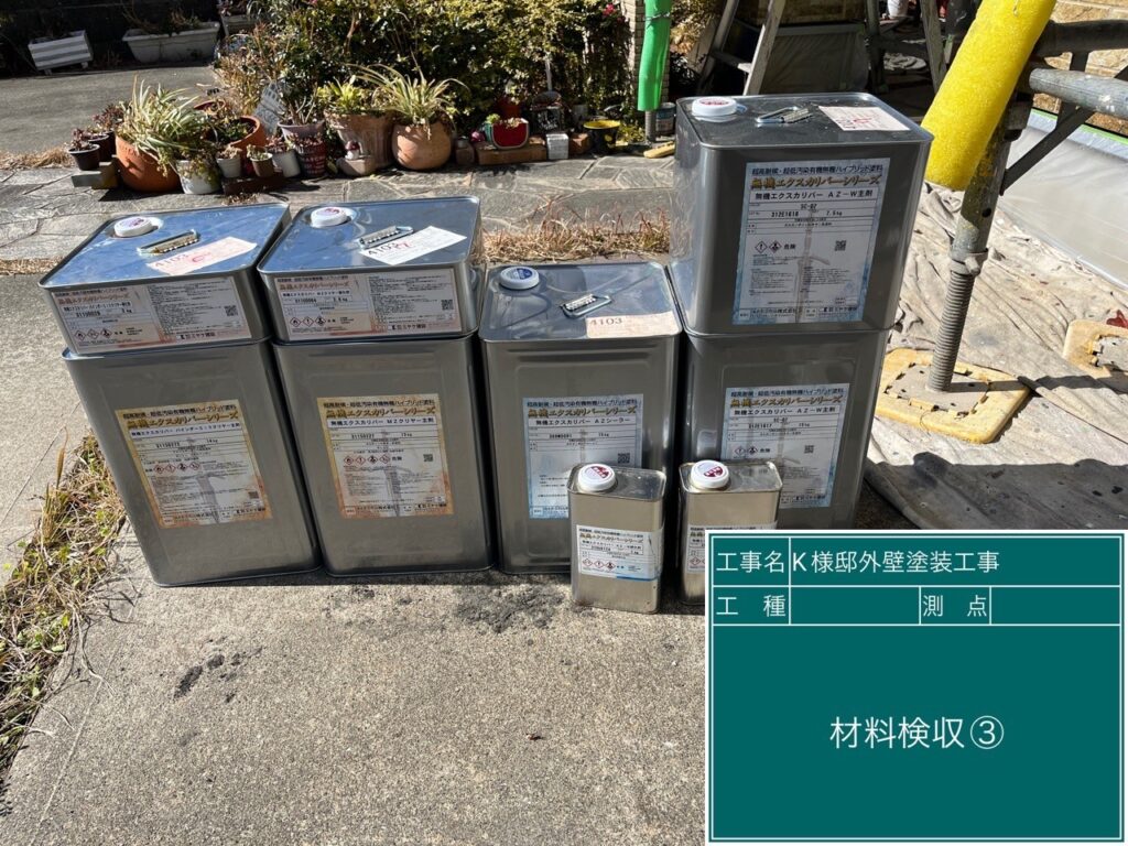 K様のお家は、築14年で初めての外壁塗装工事となります。全体的な色褪せ、チョーキング現象が見られました。またコーキングのひび割れが見受けられ、こちらに関しましては、目地は撤去打替え工法にて、開口部やその他箇所は基本的に増打ち工法にて補修致します。外壁塗装に関しましては、お客様より美観性、耐候性に優れた塗料のご提案を希望されておりましたので、高耐久性と美観性の優れた無機エクスカリバーZでご提案させて頂きました。こちらの塗料は公表されている無機含有率の高さで、高耐久性は勿論の事、美観性も維持してくれる塗料となります。バルコニー防水ですが、FRPが施されています。表層劣化が進んでおります。浮き箇所やクラック箇所は無く、一回目のメンテナンスとしては、防水層を保護するトップコート工法をご提案致します。また美観性を底上げしてくれる仕上げ材として、弊社の取り扱っているクリスタルシーズンという光触媒コーティングのご提案もさせて頂きました。こちらは塗料仕上げ剤として最後の工程に外壁や付帯部、などお家全体に吹付けるコーティング材となります。
