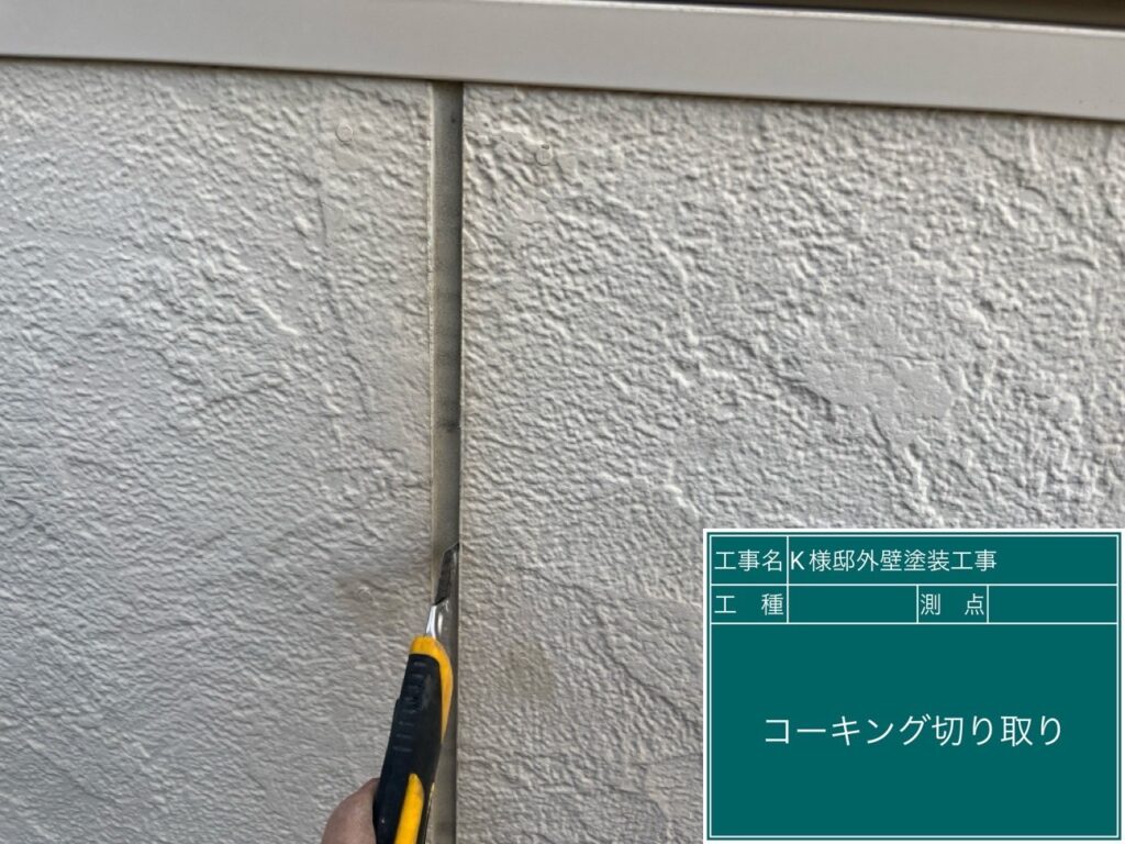 コーキング部分は経年劣化によるひび割れが目立ちました。